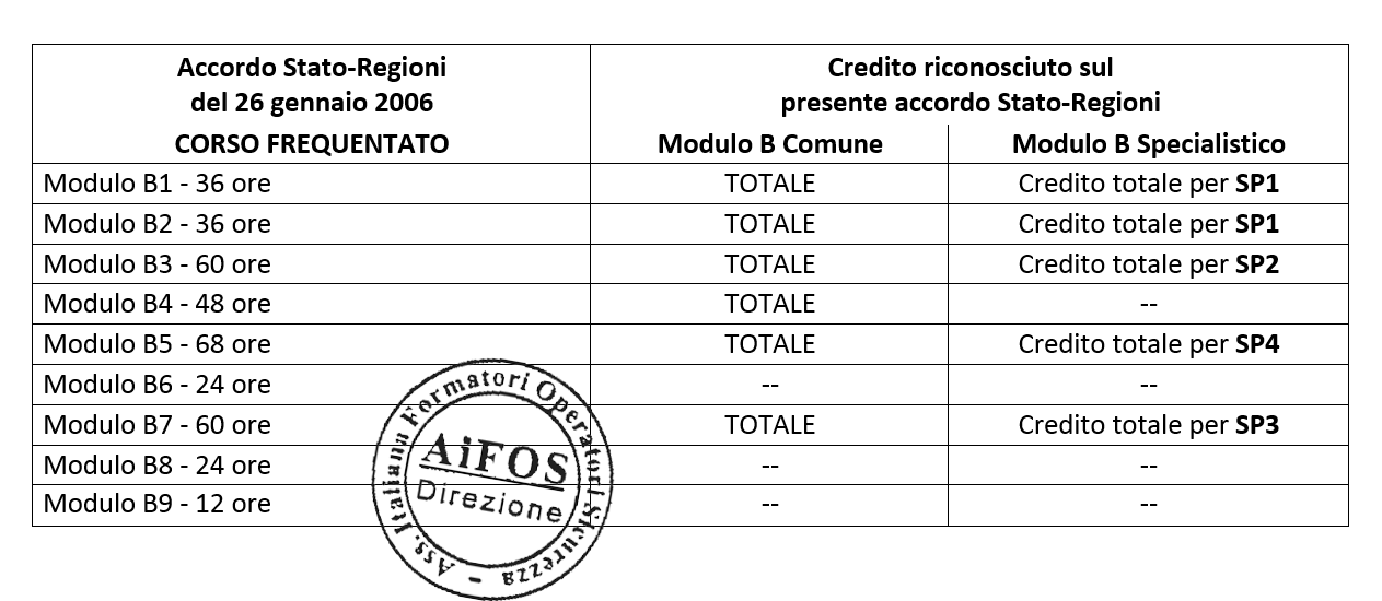 Si riferisce a coloro che hanno svolto i percorsi formativi previsti dall’Accordo del 26 gennaio 2006 ed in particolar modo rispetto alla nuova articolazione del Modulo B.